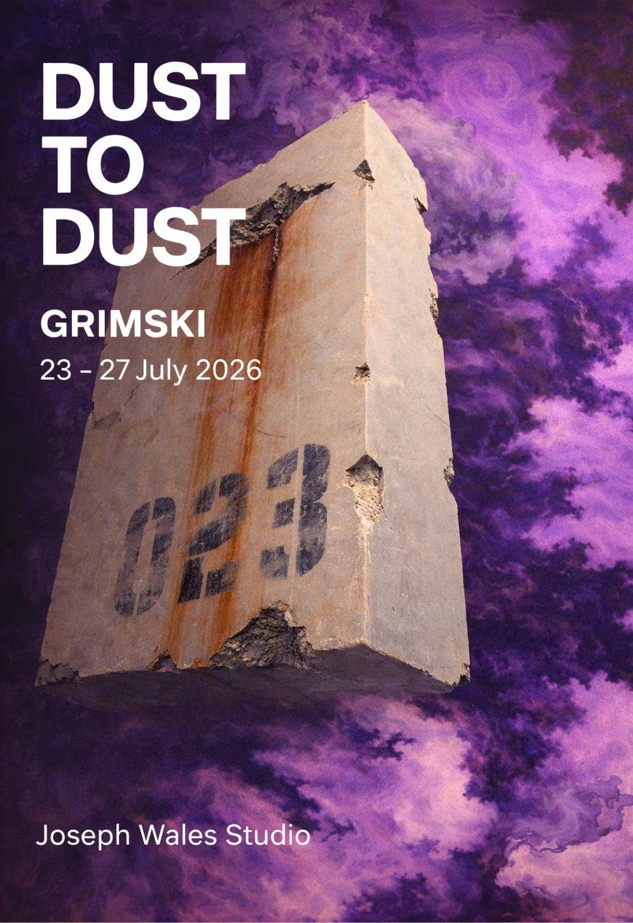 Dust to Dust is a solo exhibition by GRIMSKI, bringing together two distinct bodies of work: atmospheric paintings and wall-based sculptures that explore the movement of matter between structure and sky.