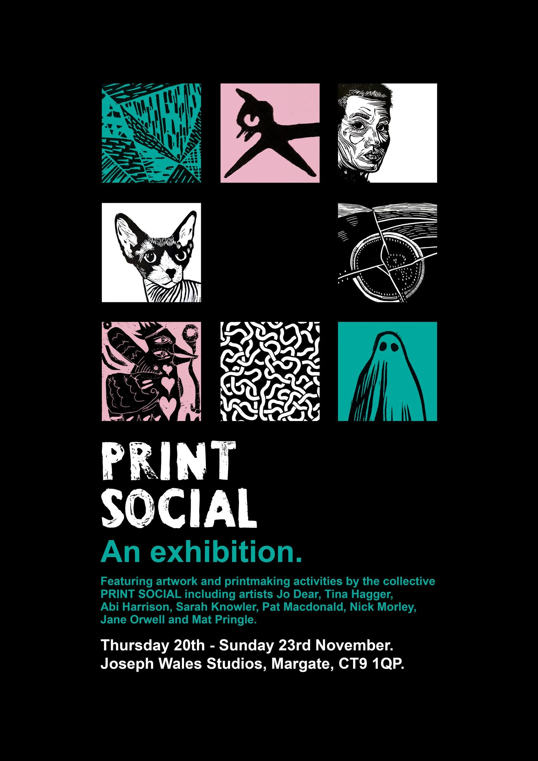 Featuring artwork and printmaking activities by the collective PRINT SOCIAL including artists Jo Dear, Tina Hagger, Abi Harrison, Sarah Knowler, Pat Mac Donald, Nick Morley, Jane Orwell and Mat Pringle.